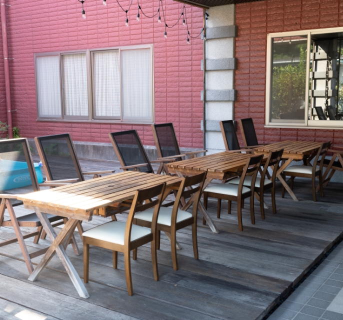 家族同様のワンちゃんもウッドデッキで一緒に。