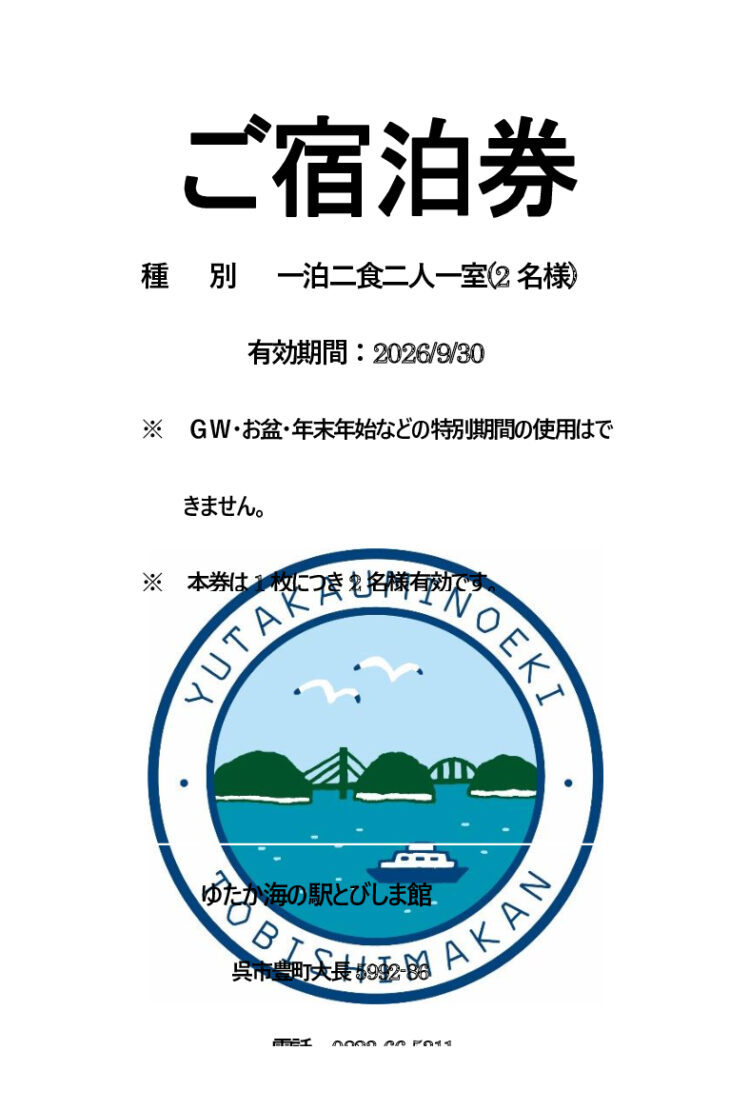 呉市にふるさと納税していただきますと、返礼品として「ゆたか海の駅とびしま館のご宿泊券」を選択することができます。